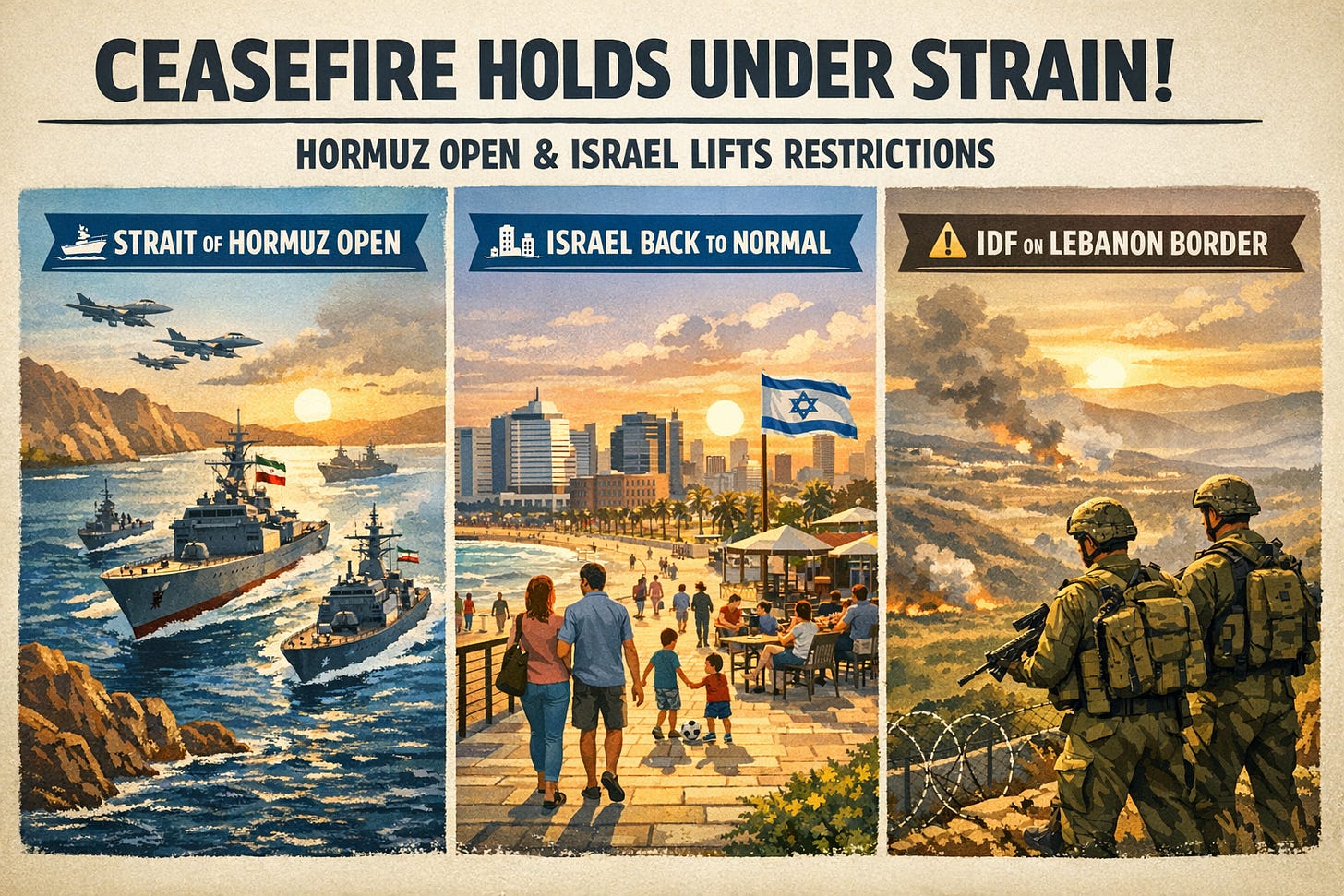 ⚠️ CEASEFIRE HOLDS UNDER STRAIN AS IRAN OPENS HORMUZ AND ISRAEL LIFTS RESTRICTIONS