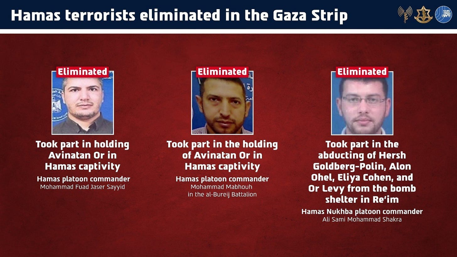 ❌ OCTOBER 7 ABDUCTION PARTICIPANT AMONG THOSE ELIMINATED: Among those eliminated was Ali Sami Mohammad Shakra, a Hamas Nukhba platoon commander who infiltrated Israel during the October 7 massacre.