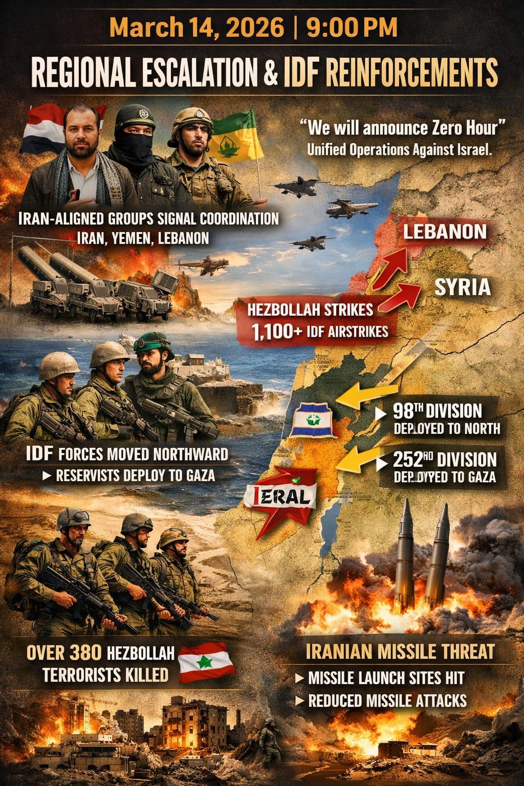 🛡️ IDF REINFORCES NORTHERN COMMAND AND SHIFTS FORCES BETWEEN FRONTS AS STRIKES DEGRADE HEZBOLLAH AND IRANIAN MISSILE INFRASTRUCTURE WHILE IRAN-ALIGNED GROUPS SIGNAL COORDINATED REGIONAL INVOLVEMENT