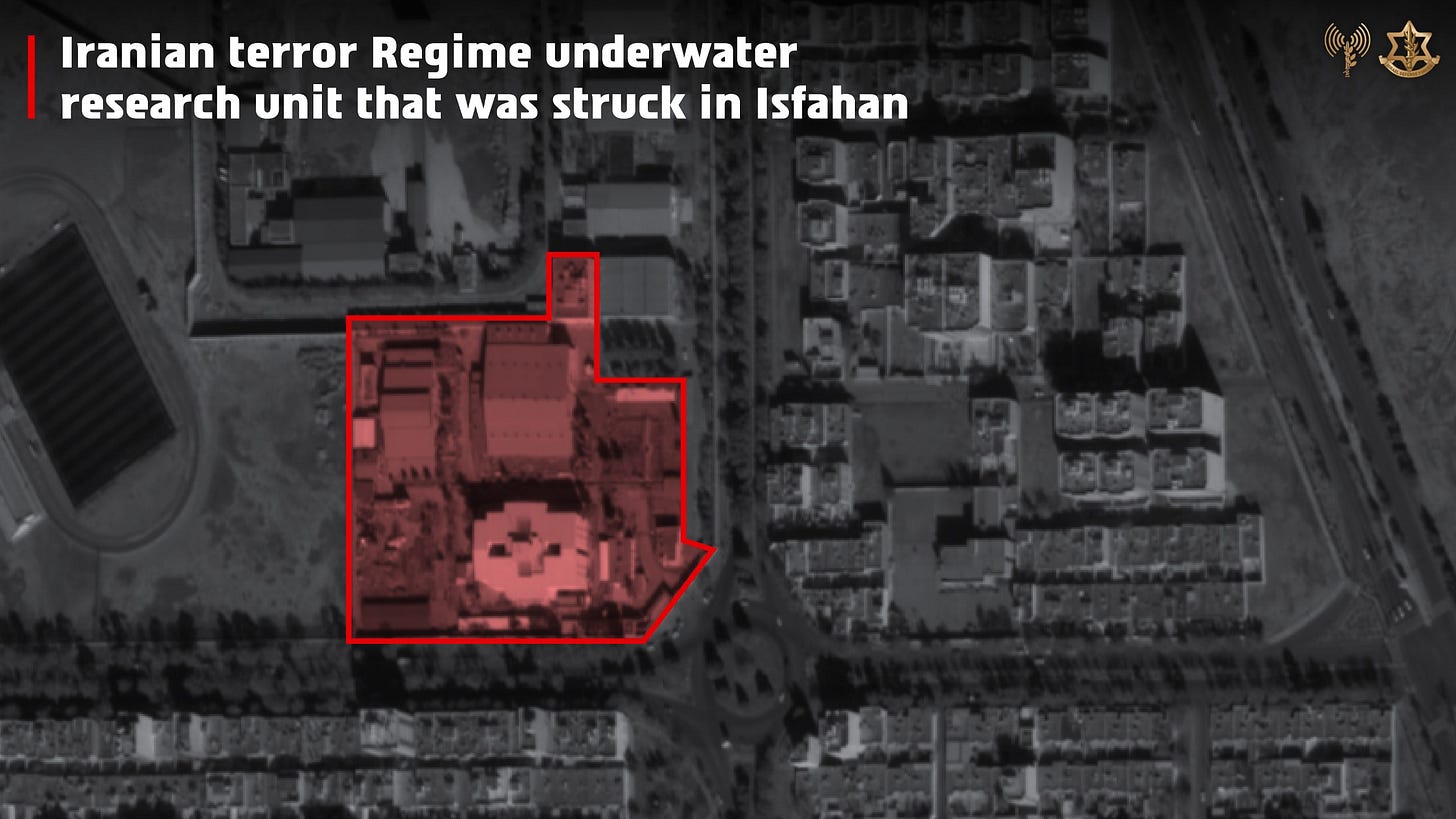 💥 Strikes on Iranian Naval Development — Isfahan: The Israeli Air Force targeted key production infrastructure linked to Iran’s naval capabilities, including the Underwater Research Center responsible for submarine design and development. The strike also impacted facilities producing unmanned naval vessels, significantly reducing Iran’s ability to expand and upgrade its naval fleet.