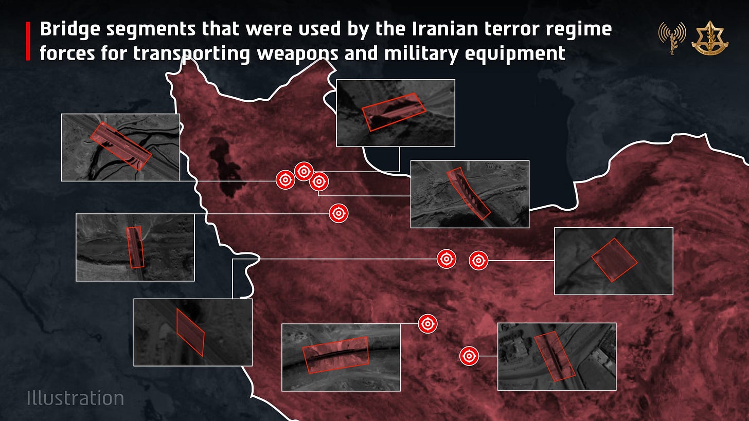 🚧 FOCUS ON IRGC WEAPONS TRANSFER ROUTES: The strikes targeted infrastructure used by the Islamic Revolutionary Guard Corps to move weapons and military equipment, including eight bridge segments across central and northern Iran. Israeli officials stated that the objective was to prevent further use of these routes while employing precision measures to reduce civilian harm.