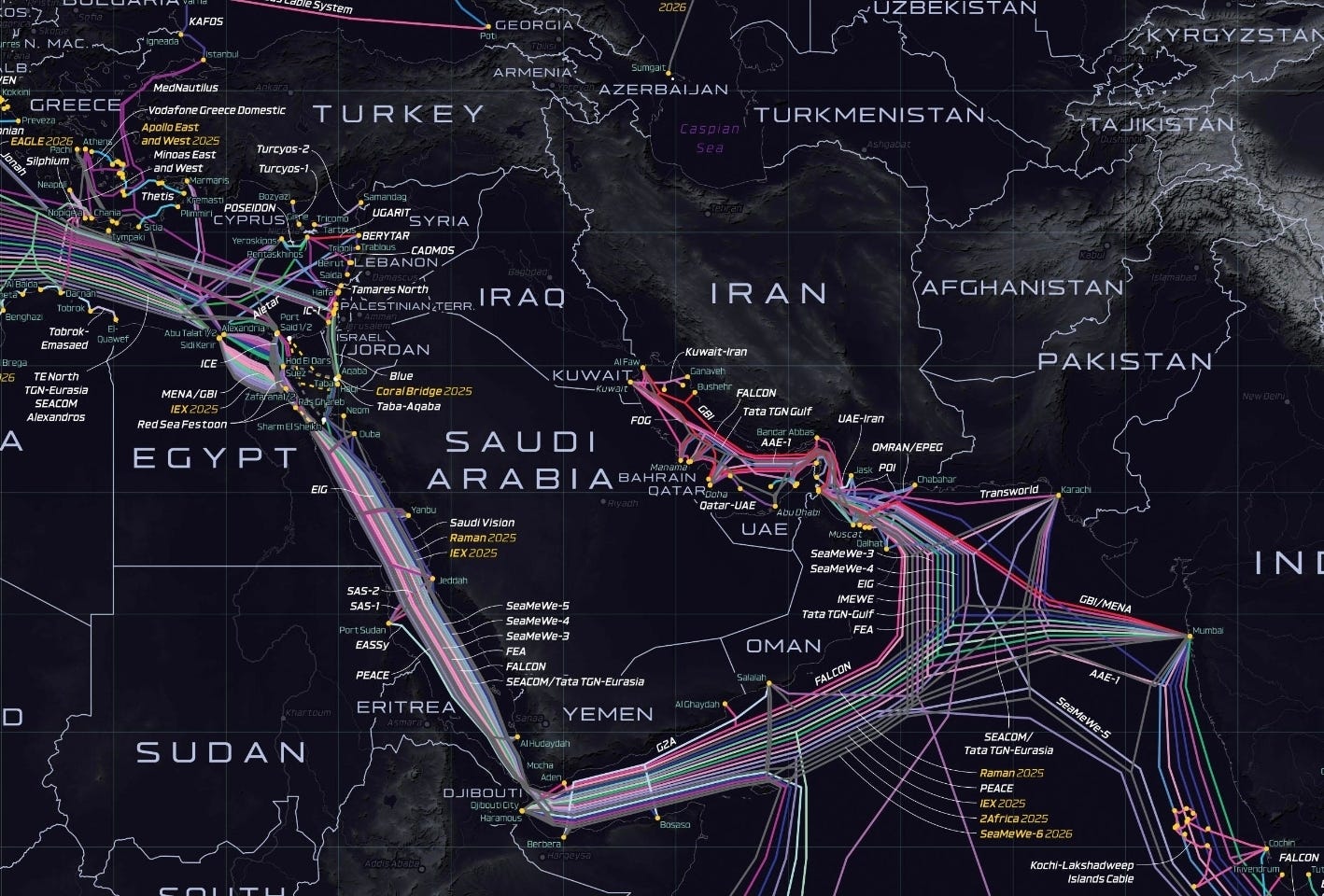 🛜 HORMUZ AS A DIGITAL CHOKEPOINT: Iran has highlighted submarine cables in the Strait of Hormuz as a vulnerable element of the global digital system, expanding the strategic focus beyond maritime shipping. Multiple fiber-optic cables pass through the corridor, linking Asia to Europe via Gulf states, and carry an estimated 99% of global internet traffic.