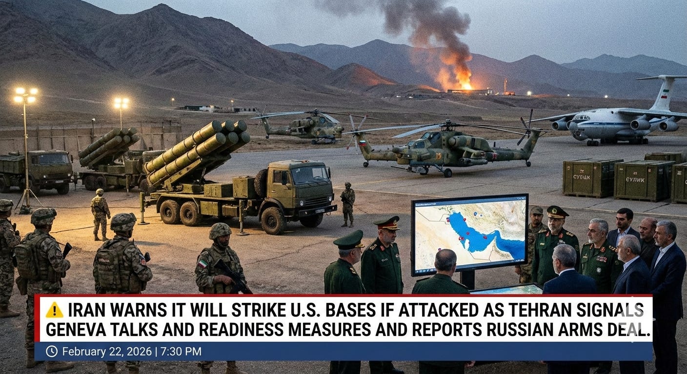 ⚠️ IRAN WARNS IT WILL STRIKE U.S. BASES IF ATTACKED AS TEHRAN SIGNALS GENEVA TALKS AND READINESS MEASURES AND REPORTS RUSSIAN ARMS DEAL