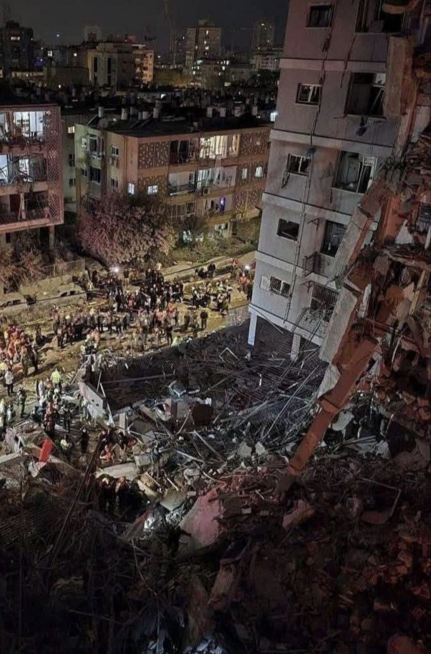 🏚️ Collapsed buildings and rescue operations: At least four buildings collapsed in the impact zone, with reports of individuals trapped under rubble. Home Front Command search and rescue teams are conducting systematic operations while assisting civilians in the affected area.