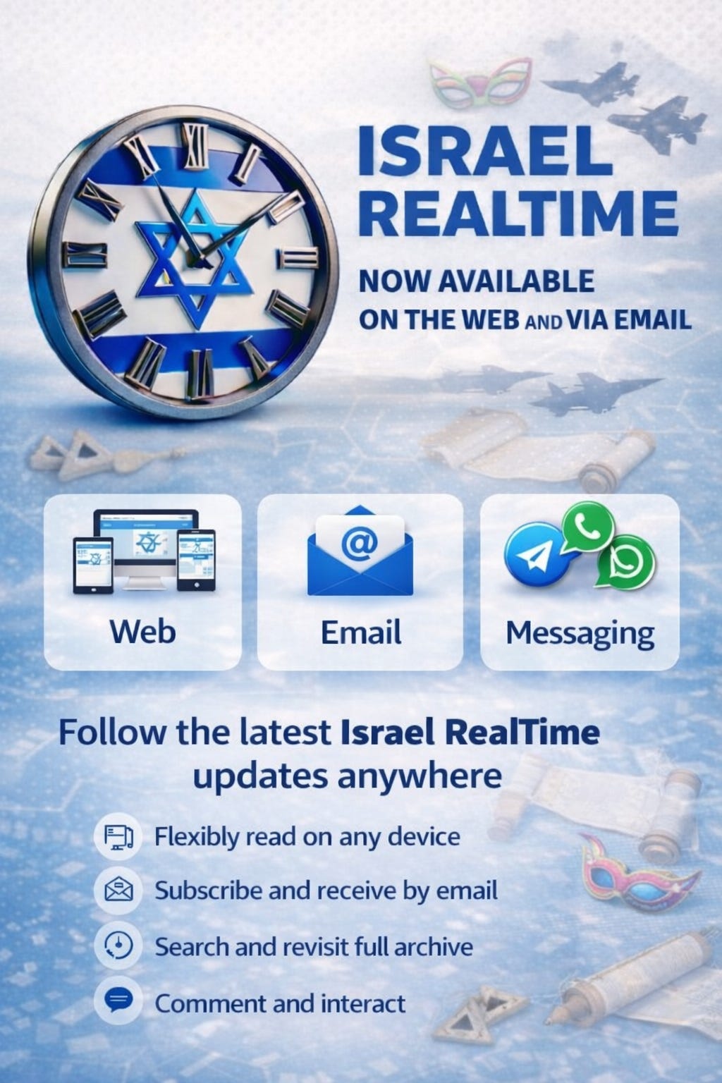 Israel Realtime continues around the clock โ including throughout Purim โ so the world can see, in real time, what Israelis are living through.