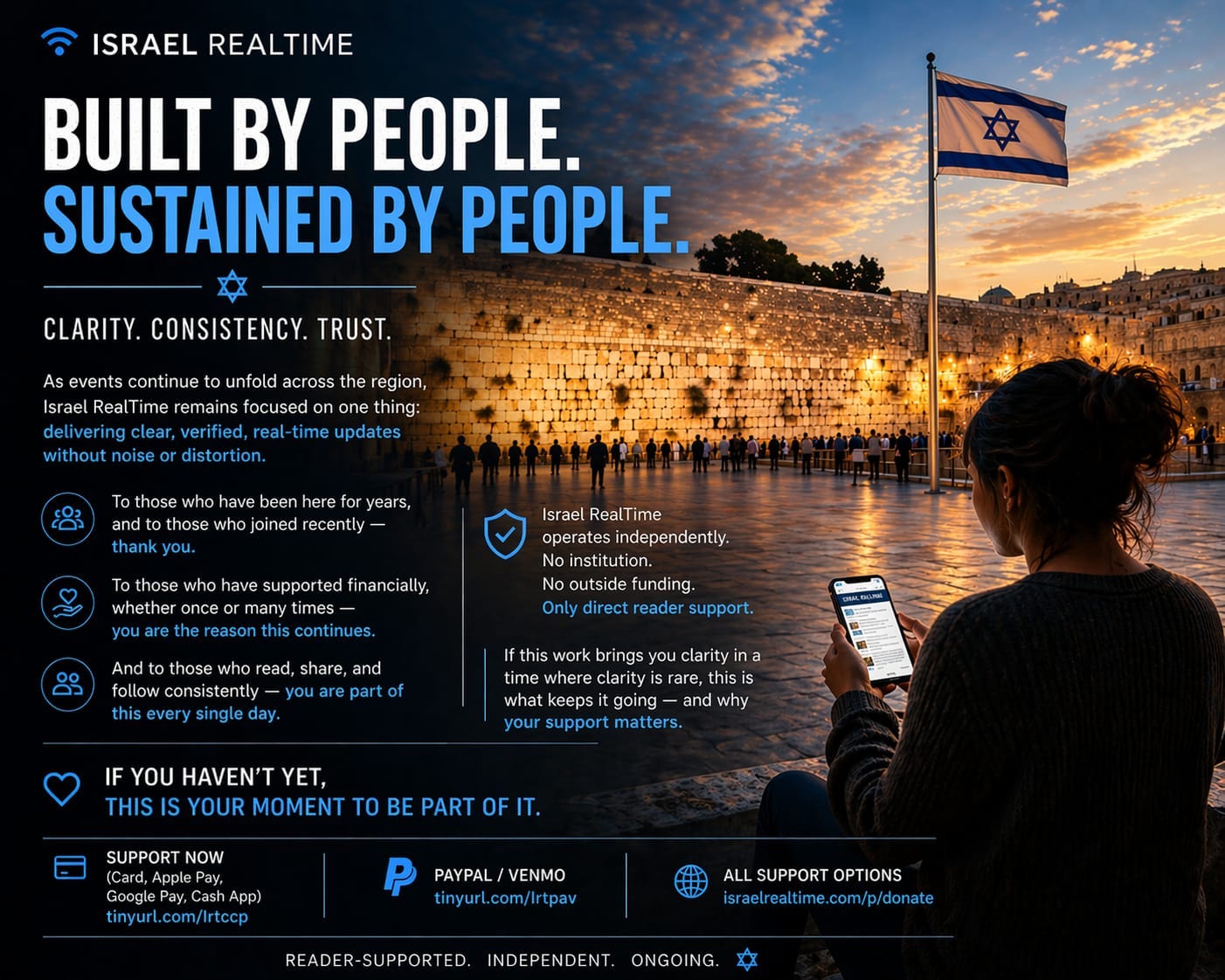 Israel RealTime operates independently. No institution. No outside funding. Only direct reader support.