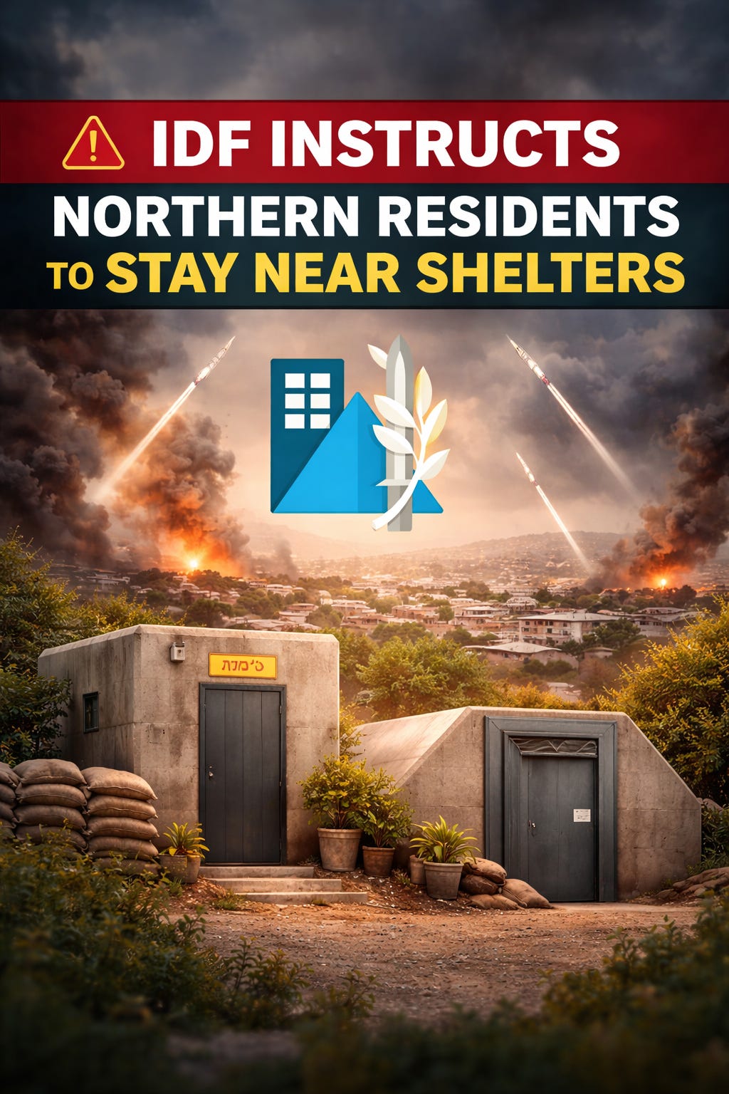 ๐ก๏ธ Home Front Command restrictions along northern border: Residents near the northern confrontation line have been instructed to remain close to protected spaces, with movement minimized and gatherings avoided following a situational assessment.