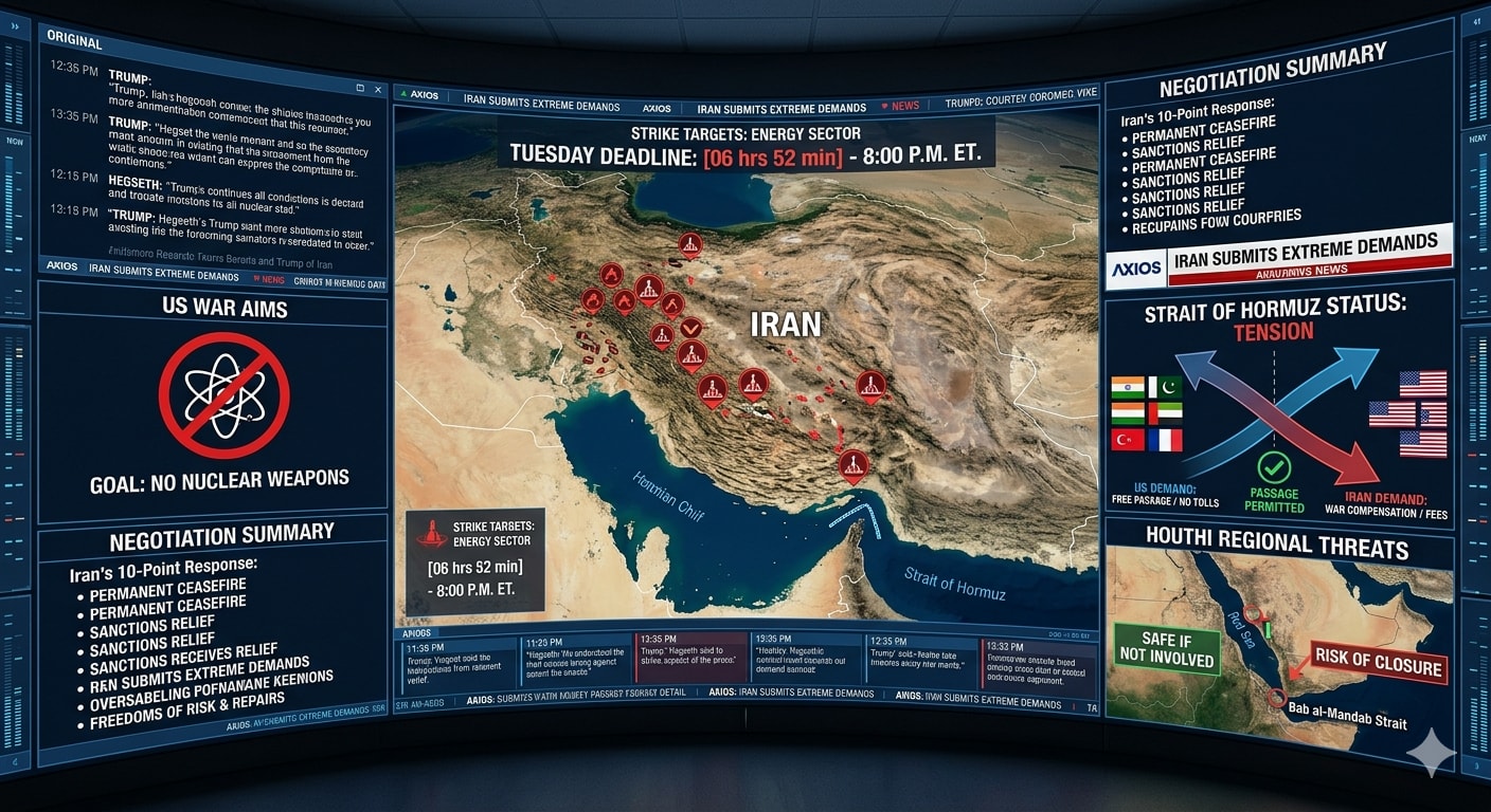 🛰️ NEGOTIATIONS AND IRANIAN POSITIONS: U.S. officials, cited by Axios, described Iranian demands as extensive, with a key dispute centered on Iran’s insistence on a permanent end to the war rather than a temporary ceasefire. Iran’s response, delivered via Pakistan, includes conditions such as sanctions relief, reconstruction support, cessation of regional fighting, and regulated transit arrangements in the Strait of Hormuz.